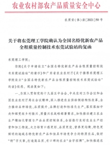 2021年3月,农业农村部农产品质量安全中心将伟德国际唯一官网入口确认为“全国名特优新农产品全程质量控制技术东莞试验站”(统一编号CAQS-GAP-SYZ041)。该试验站依托公司bevictor伟德官网食品营养健康工程与智能化加工研究中心及院内相关技术机构与创新团队, 主要针对广东省区域范围内的农业,积极开展名特优新农产品全程质量控制技术研发、技术推广、技术培训、技术服务、生产指导、消费引导、试点推广、人才培养等技术创新引领工作。服务内容包括:1. CAQS-GAP试点培育。开展全程质量控制技术研发与服务,提供全程质量控制技术体系培训与咨询,帮助试点单位建立全程质量控制技术体系;2. 受理试点单位申报材料,审核合格后,上报国家中心体系建设处;3. 协助试点单位申请国家良好农业规范(GAP)认证。
