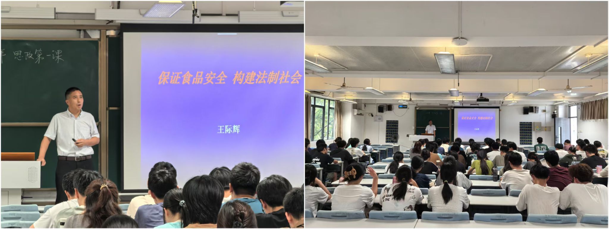 9月15日下午,王际辉以“保证食品安全 构建法制社会”为题,对2024材料1班(广医联培)、2024电子1班(广医联培)和2024应用化学(药学联合班)全体同学授课。王际辉结合生命健康技术领域的专业特性,从当前食品安全领域的现状入手,通过剖析典型案例,详细解读了食品安全对公众健康、社会稳定的重要意义以及相关法律法规在保障食品安全中的关键作用。他强调,作为未来可能投身大健康领域的学子,既要扎实掌握专业技术,用科学手段守护食品安全,更要牢固树立法治意识,明白每一次质量把控背后的法律责任与社会担当,同学们应以专业能力为支撑,努力成为安全防线的践行者与法治社会建设的推动者。