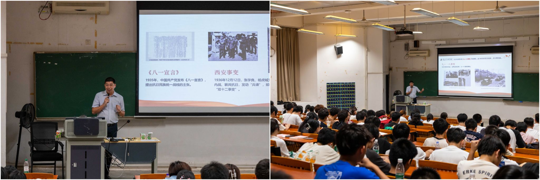 10月11日晚,谢炯标以“传承和弘扬伟大抗战精神 踔厉奋发 勇毅前行”为题,对2025智能医学工程1和2班、2025食品科学与工程1班以及2025食品营养与健康1班全体同学进行了授课。课上,谢炯标带领同学们回顾了抗日战争时期中国人民浴血奋战的艰辛历程,深刻解读了革命先辈们在烽火岁月中展现出的“天下兴亡、匹夫有责”的爱国情怀和“视死如归、宁死不屈”的民族气节,深入阐释了伟大抗战精神的时代价值。他指出,新时代青年虽然没有直面战火,但伟大抗战精神中蕴含的坚韧不拔、团结奋进的品质,仍是同学们成长路上的宝贵财富。他鼓励同学们将传承伟大抗战精神与追求专业卓越相结合,在学习科研中攻坚克难、勇攀高峰,以青春之力践行“强国有我”的誓言。